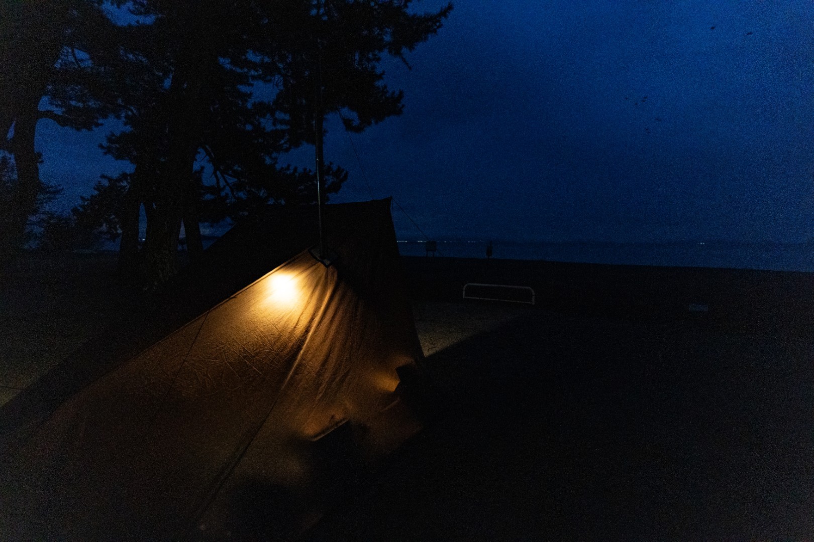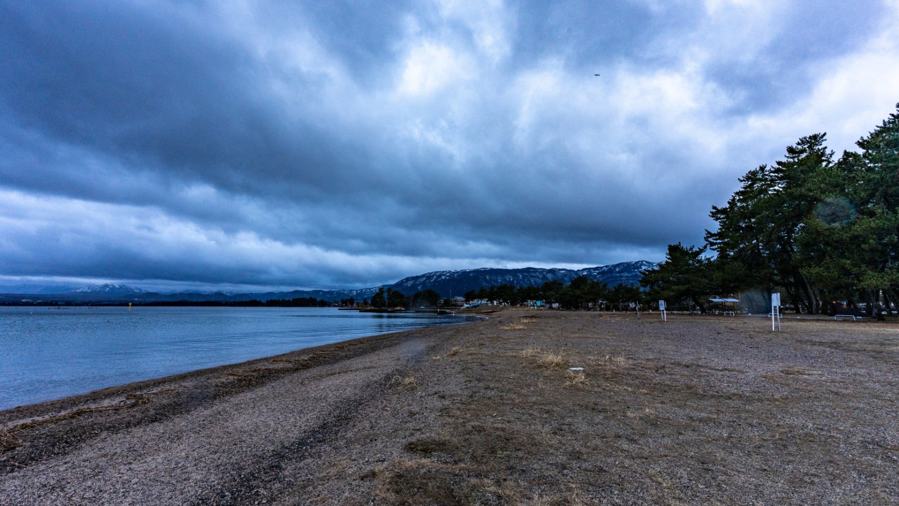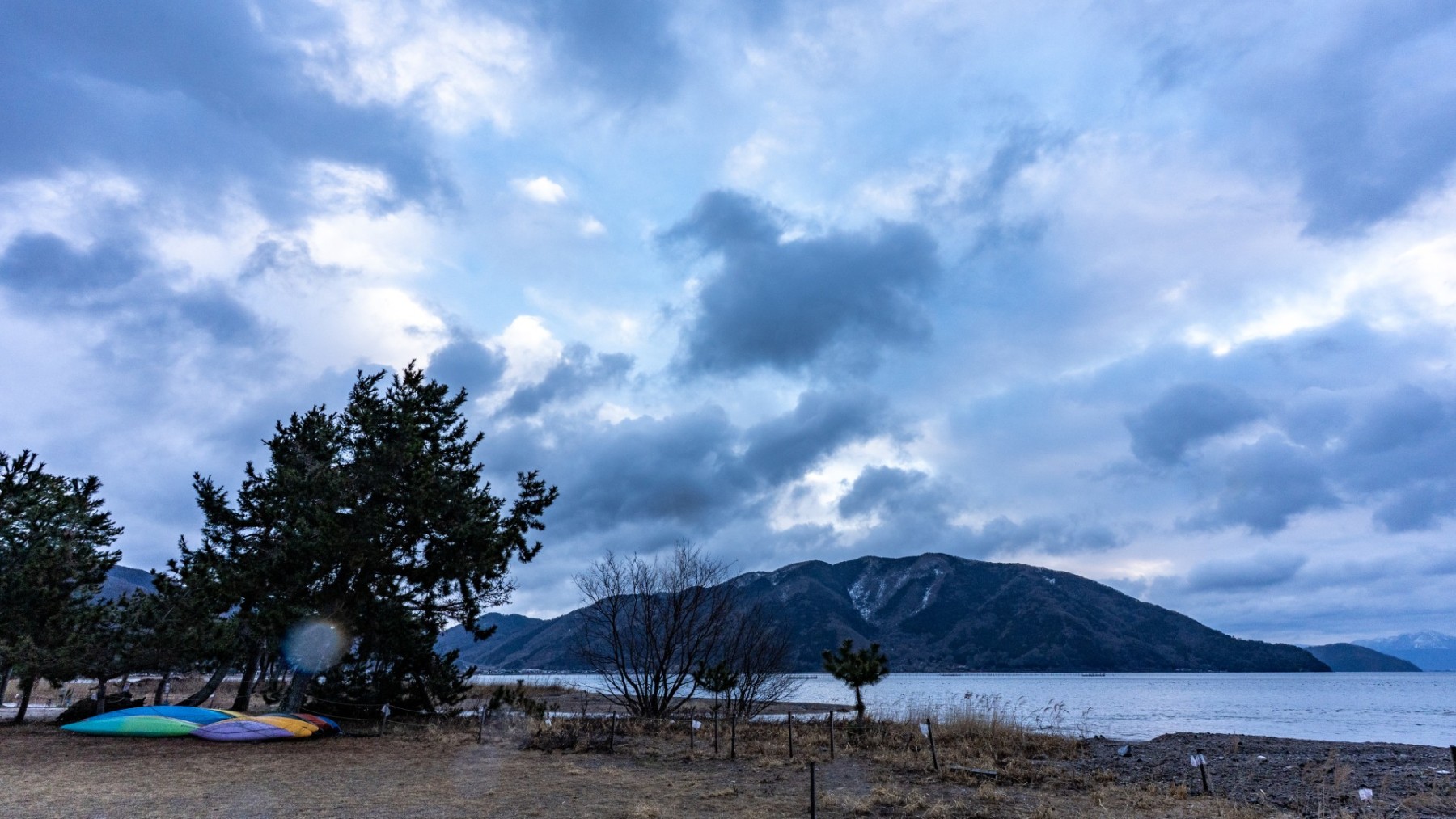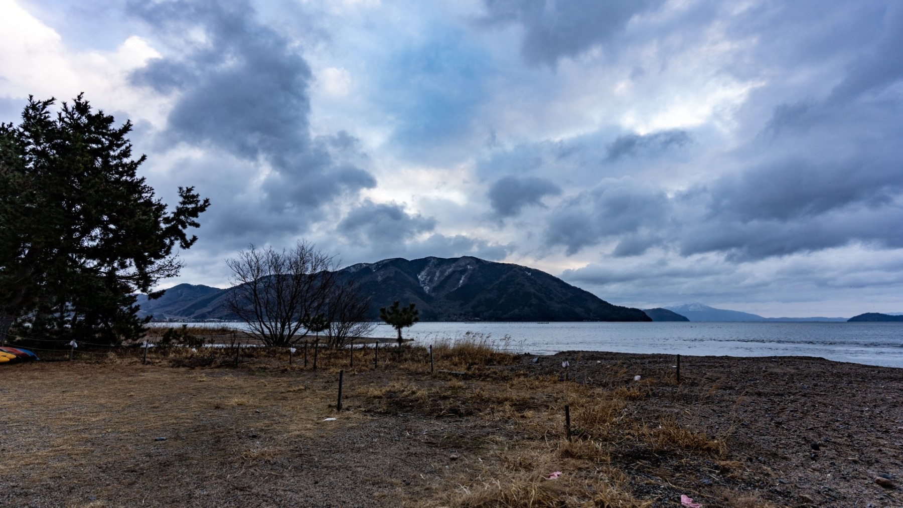 キャンプ地は静かな琵琶湖のほとり。天気はあいにくの雨模様でしたが、しっとりとした湖畔の雰囲気と冬の空気が心を落ち着かせてくれました。