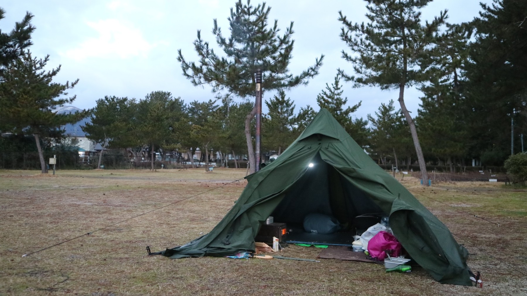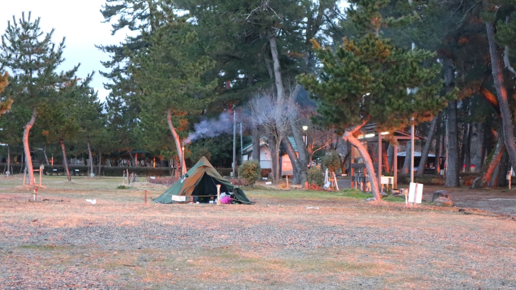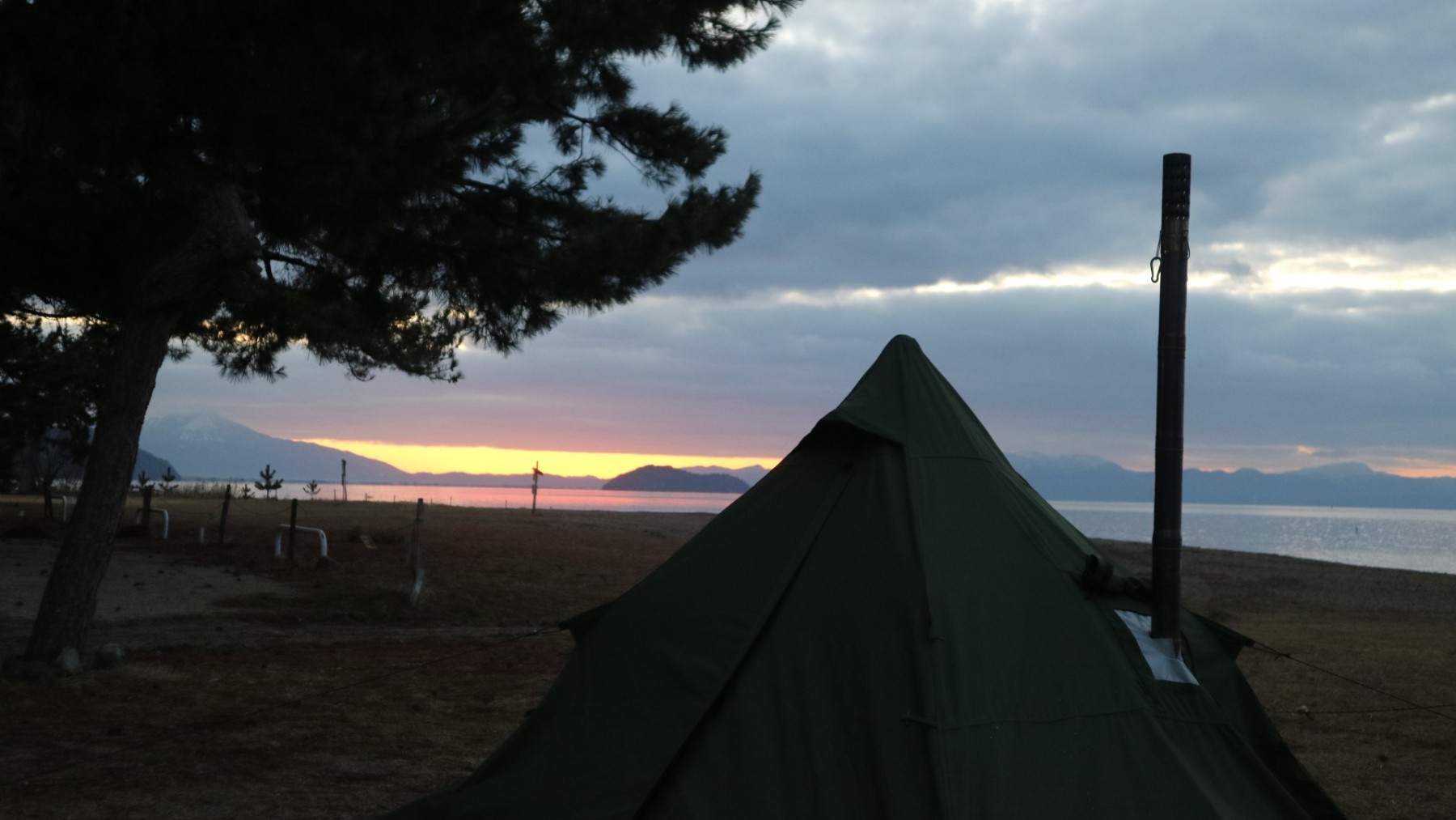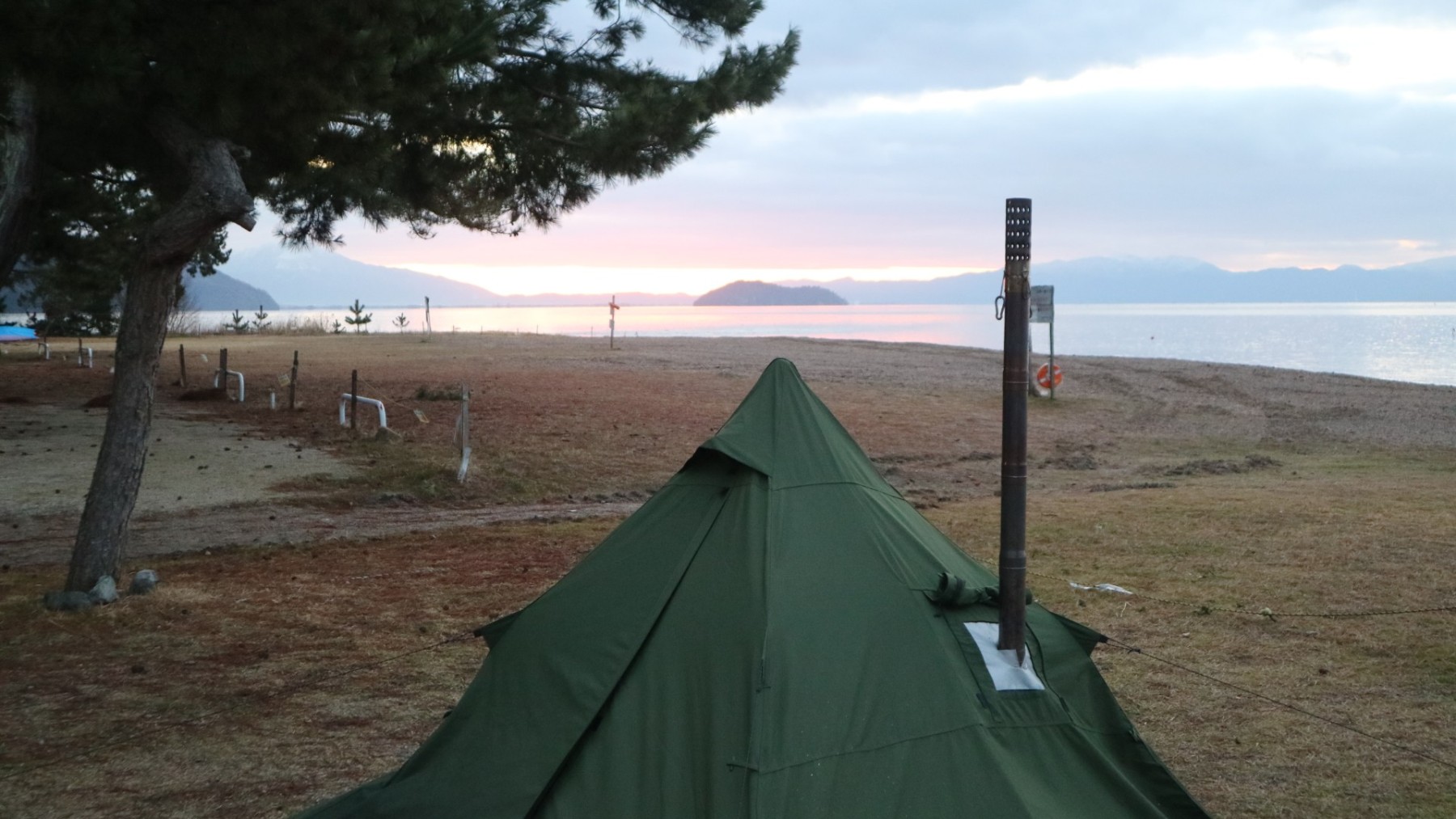 当日はあいにくの雨でしたが、湖畔の静けさと雨音に癒されながら、薪ストーブのぬくもりとすき焼き&地酒でじっくりと冬キャンプを楽しみました。