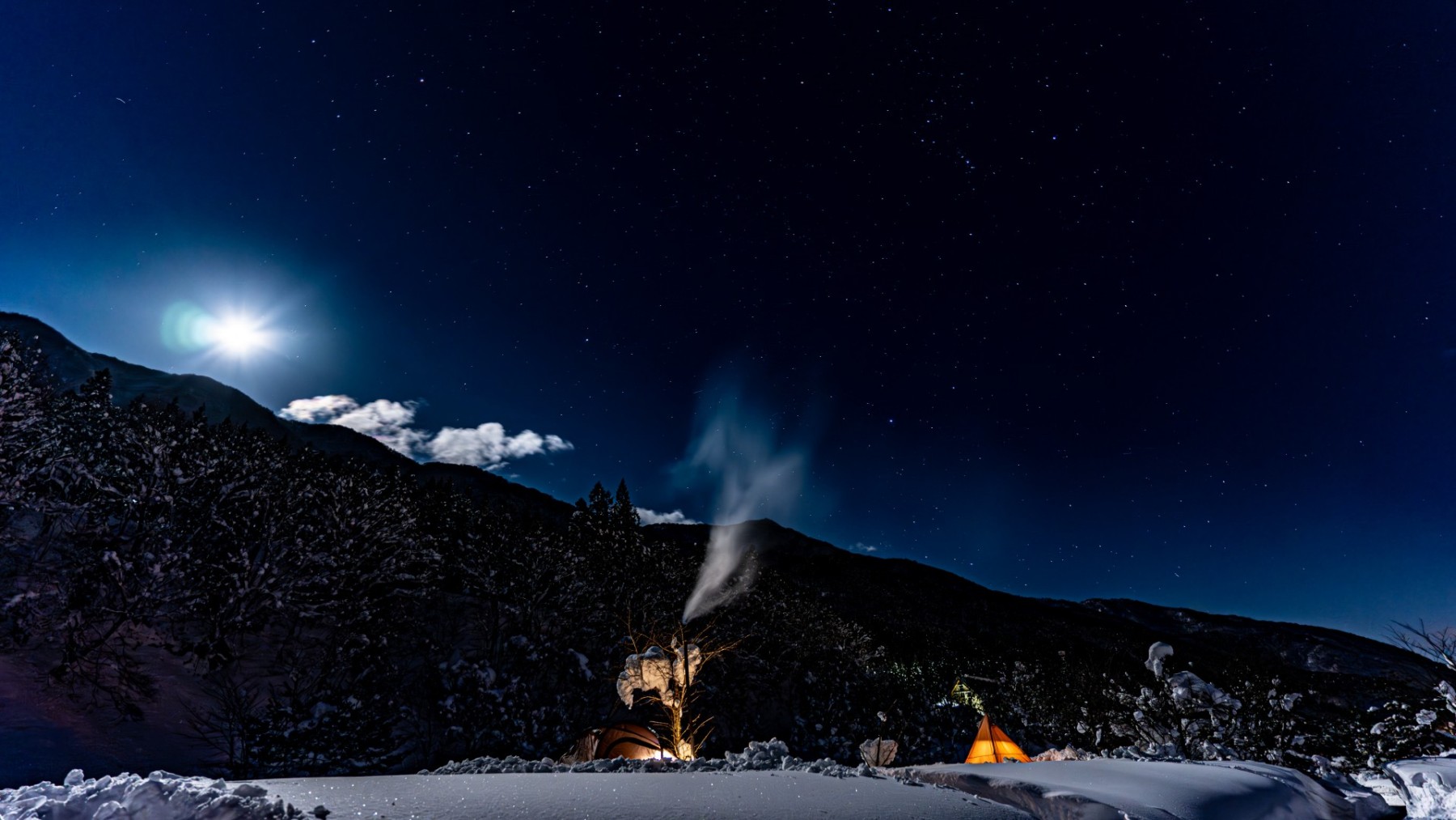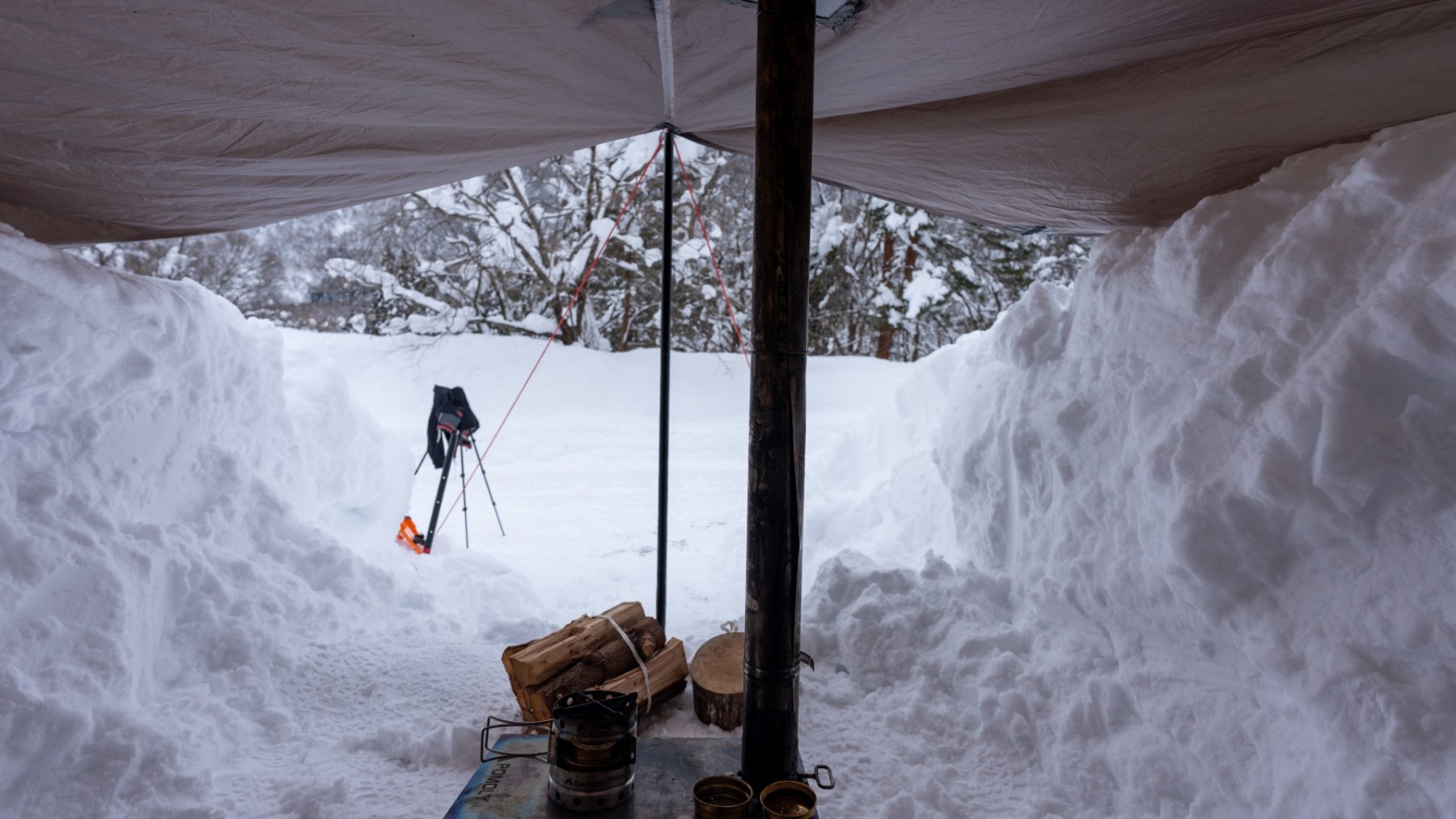 今回はテントを使わずタープ泊に挑戦。過酷な寒さの中でも、薪ストーブ🔥で暖をとりながら、雪景色に包まれた静かな時間を満喫しました。白川郷の写真も掲載しました。