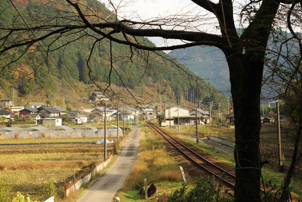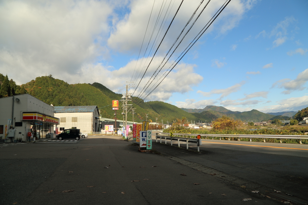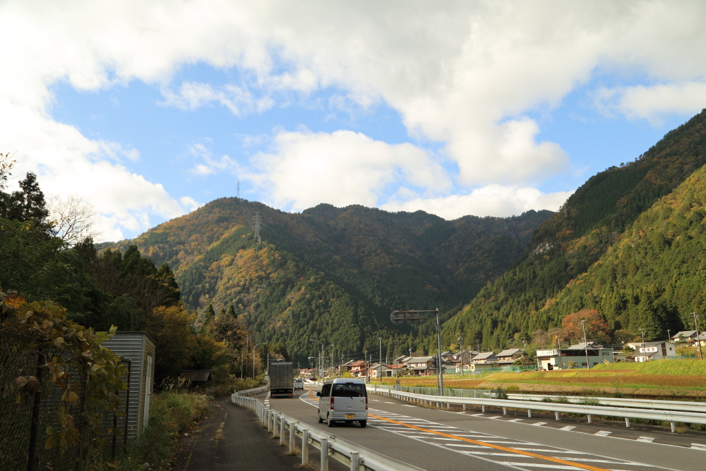 国道156号線の長良川を挟んで反対側はのどかな風景がつづく。