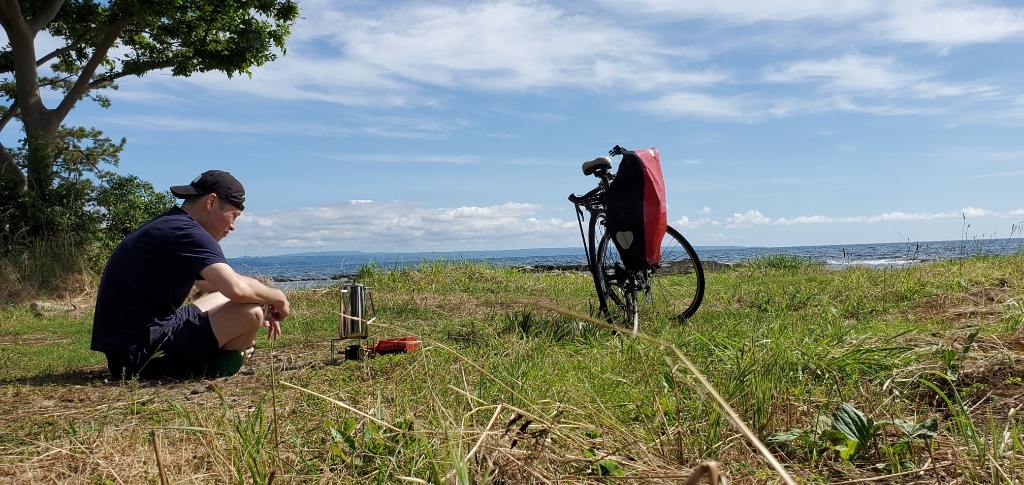 勝尾崎キャンプ場で朝食とコーヒーの準備。