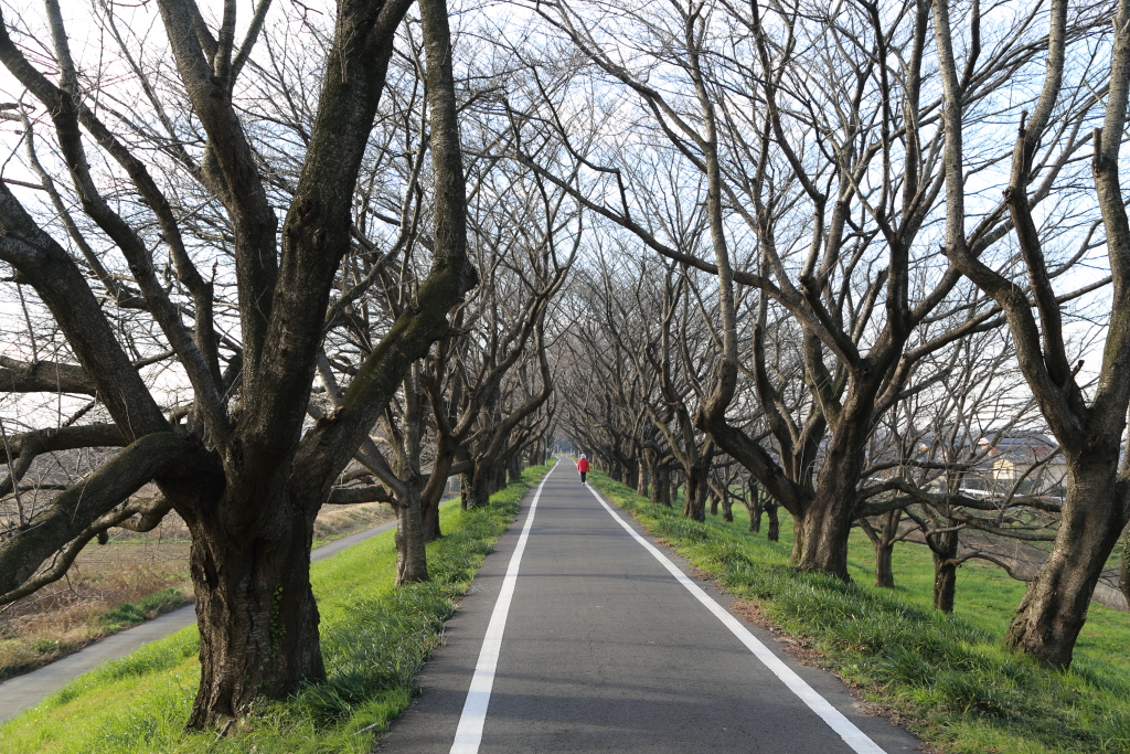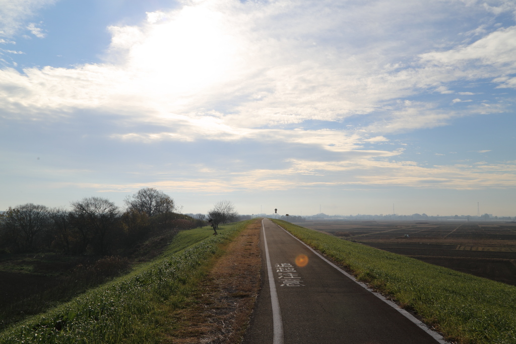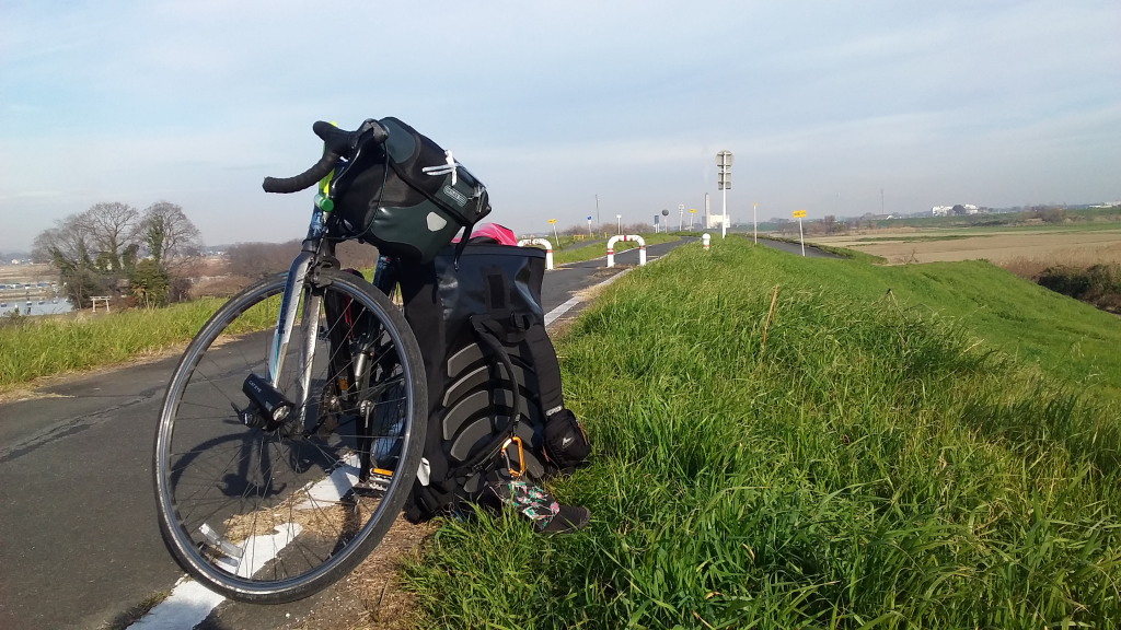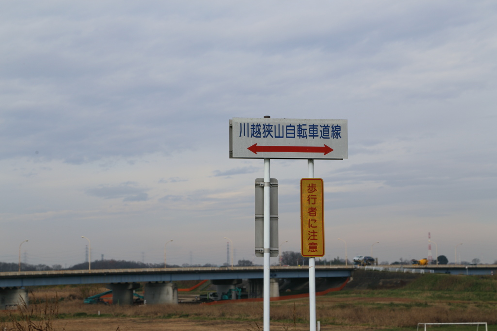 この陸橋を下りてすぐに川沿いの自転車道へ。