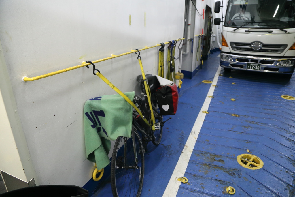 自転車はこんな感じで積んでます。丁寧に固定されてます、ありがとうございます。