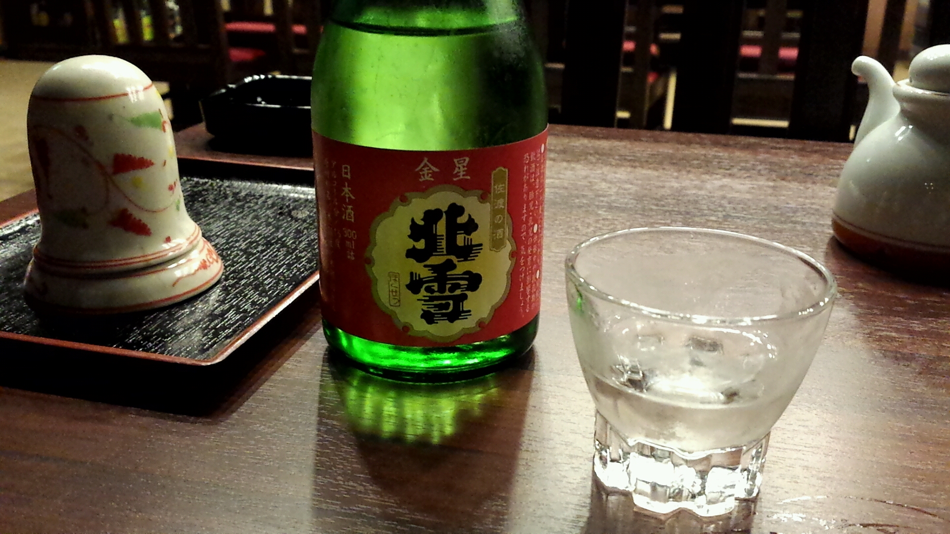 地酒の北雪を飲んでます。すごく飲みやすいお酒です。冷酒で。