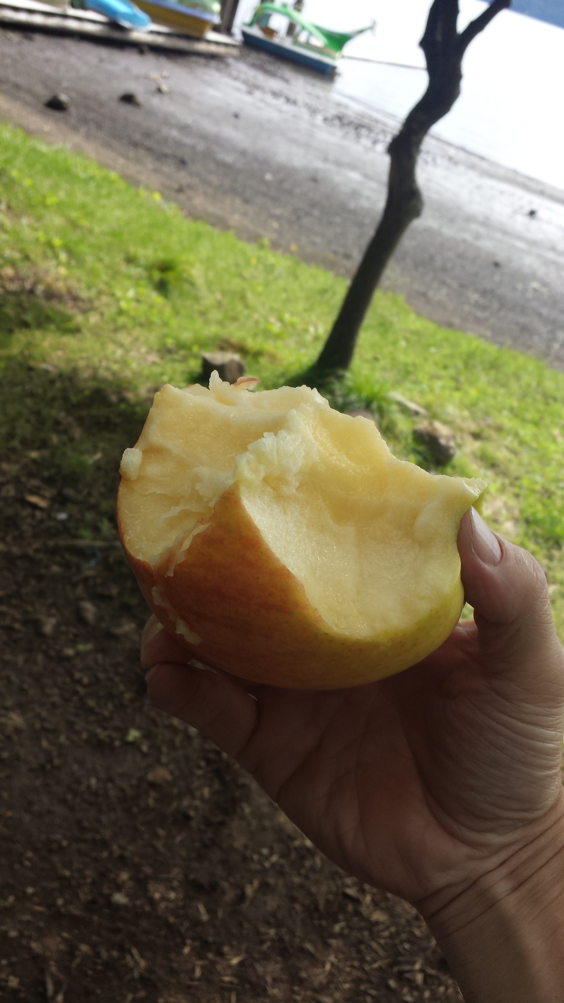 朝食には昨日お隣の本山さんから頂いたリンゴを。