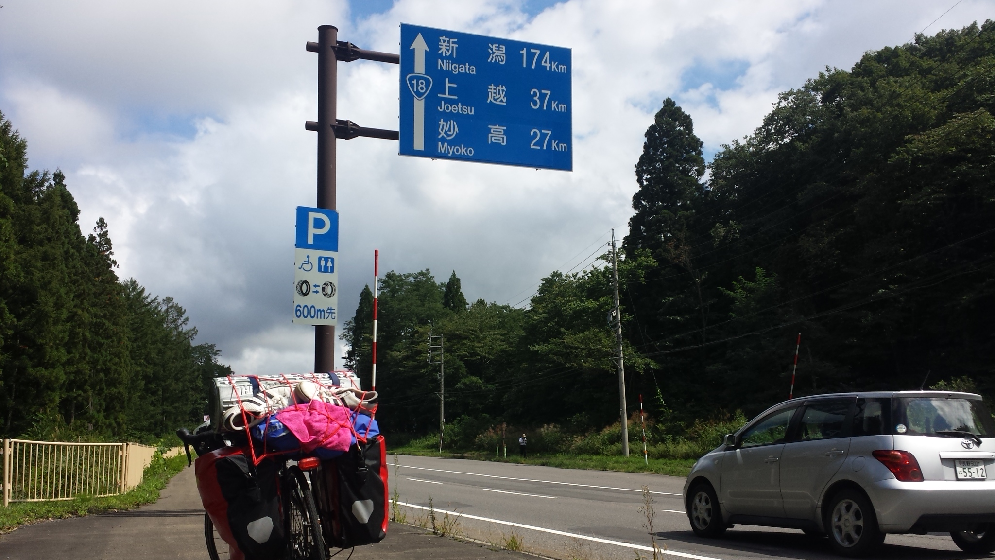 ソフトを食べてすぐに出発です。国道18号線を日本海の方へ下りて行きます。