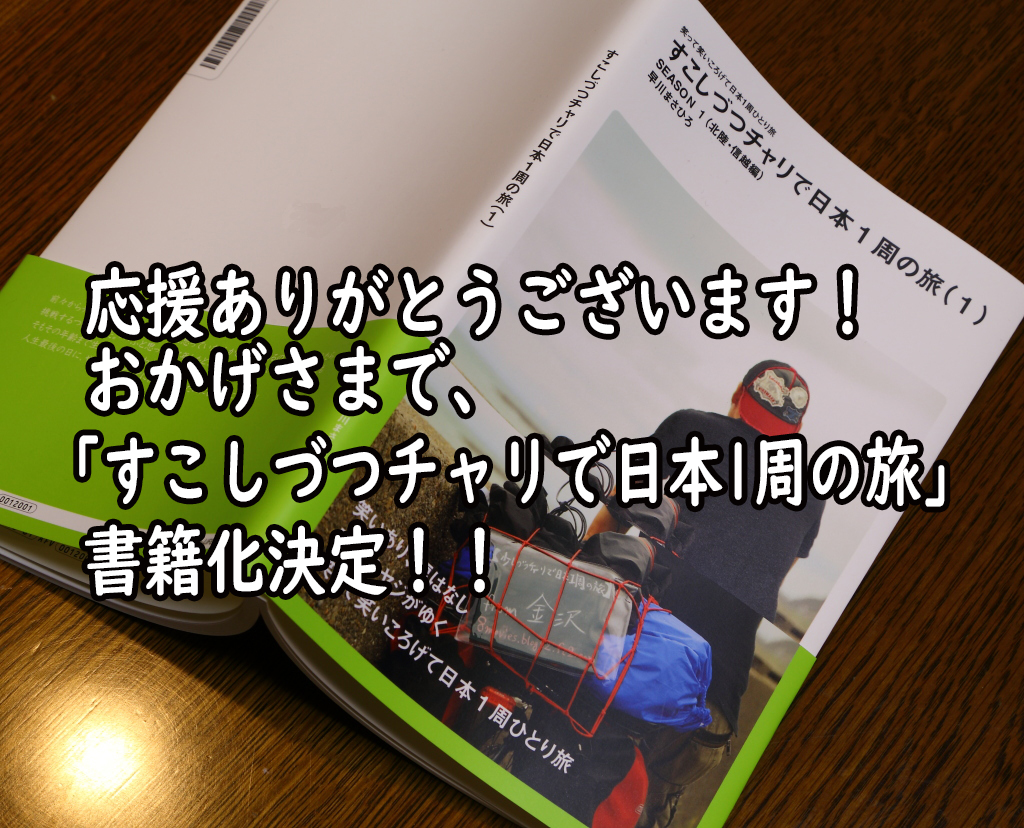 日本1周の旅が本になりました チャリで日本1周 2022年2月5日(Sat) 2016年2月4日(木) この記事は約1分で読めます。 すこしづつチャリで日本1周の旅が本になりました。 今回は第一弾、2015年に旅をした北陸・信越編です。 表紙