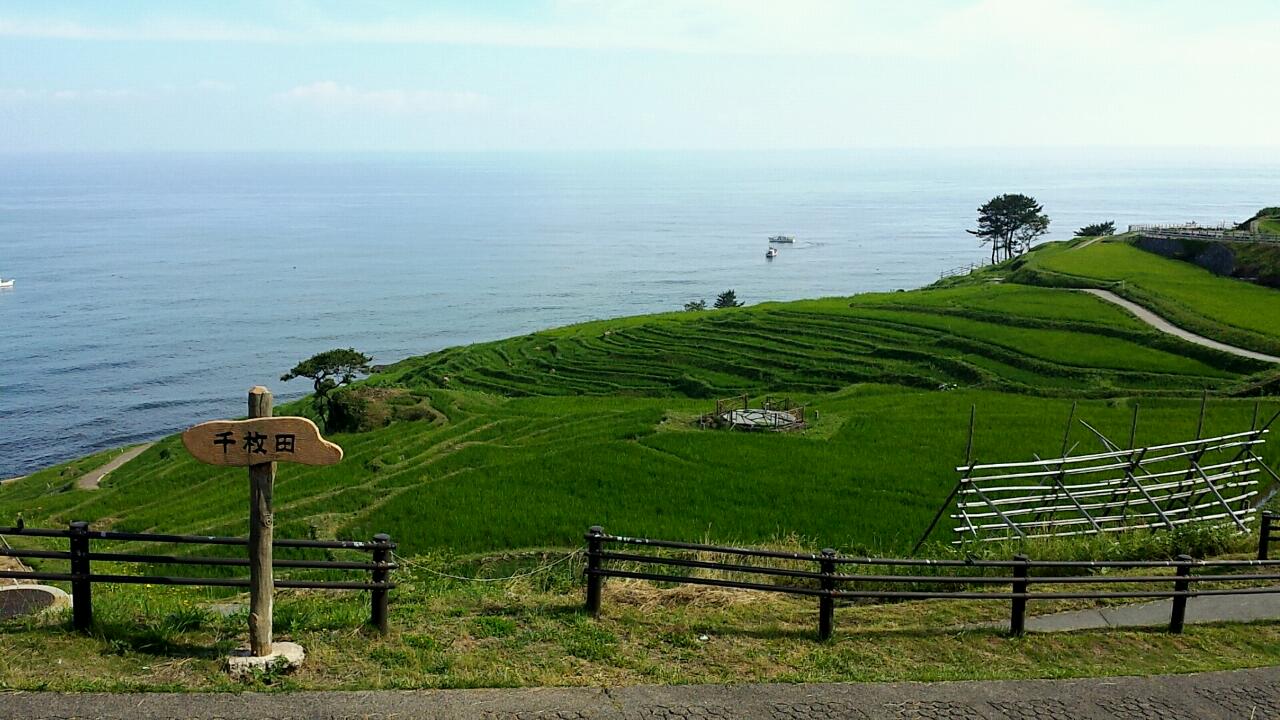 最初のプチ難関、千枚田。石川県輪島市白米町に広がる美しい棚田で、まるで波のように広がる田んぼが壮大な景色を作り出しています。ここは日本の棚田百選にも選ばれており、その風景に圧倒されること間違いなしです。