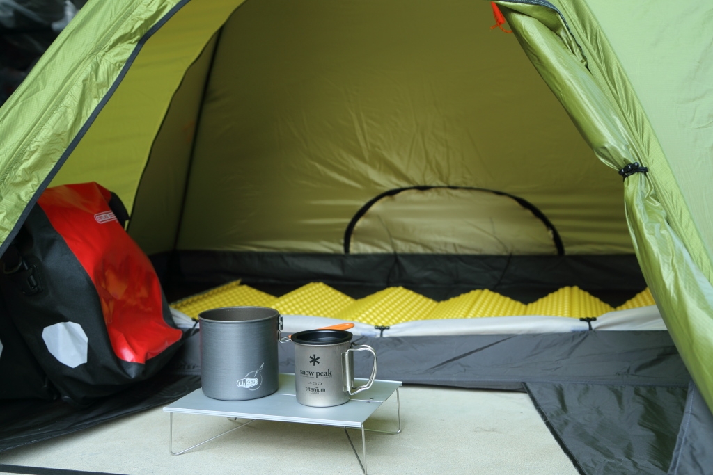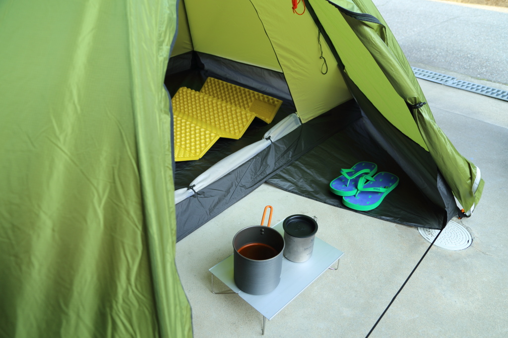 特徴はペグを打たなくても前室(土間)があることかな。雨の日なんかはこの前室で調理ができます。