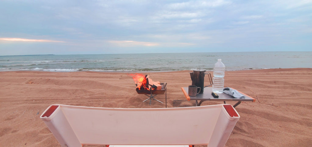 浜辺でコーヒーブレイク アウトドア 2025年6月3日(Tue) 2021年6月12日(土) この記事は約1分で読めます。 夕方から暇になったので内灘海岸へ行ってコーヒーを飲んできた。内灘海岸は4駆で走れる広い海岸です。