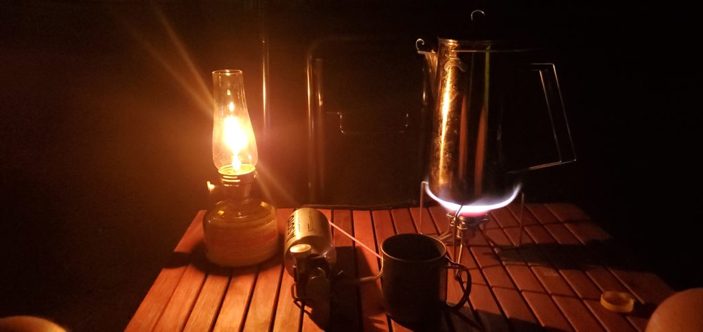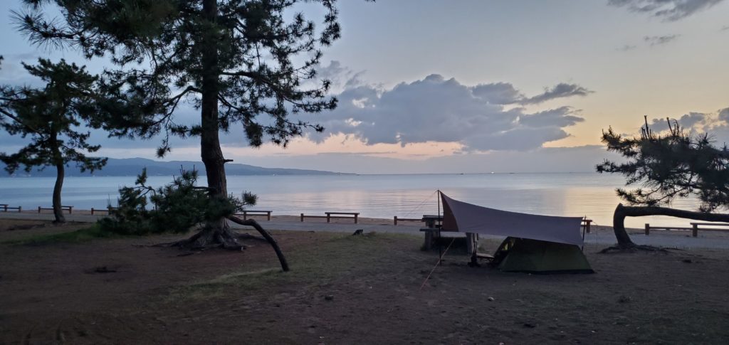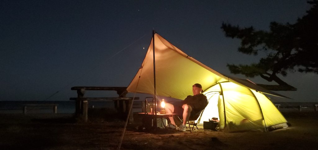 夕方~21時くらいまで土砂降りでした。タープを叩く雨音が好きです。